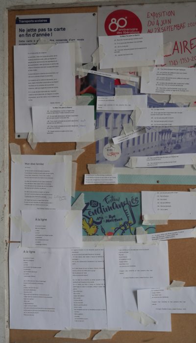 Astronomie & astrophysique • biscuits salés cyanotype • crêpes • danse orientale • écouter la musique • four solaire pliable • marmite norvégienne • graff • initiation à la boxe • initiation à la programmation • jeu de go • lactofermentation • les bois et les arbres • lutherie amateure • macramé • mobiles & attrape-rêves • nems • observation des étoiles • peinture en bâtiment • petite menuiserie • plantes sauvages • polyphonie • qi gong • réalisation d’un fanzine • roller • sculpture sur savon • tawashi • tin whistle & la musique irlandaise